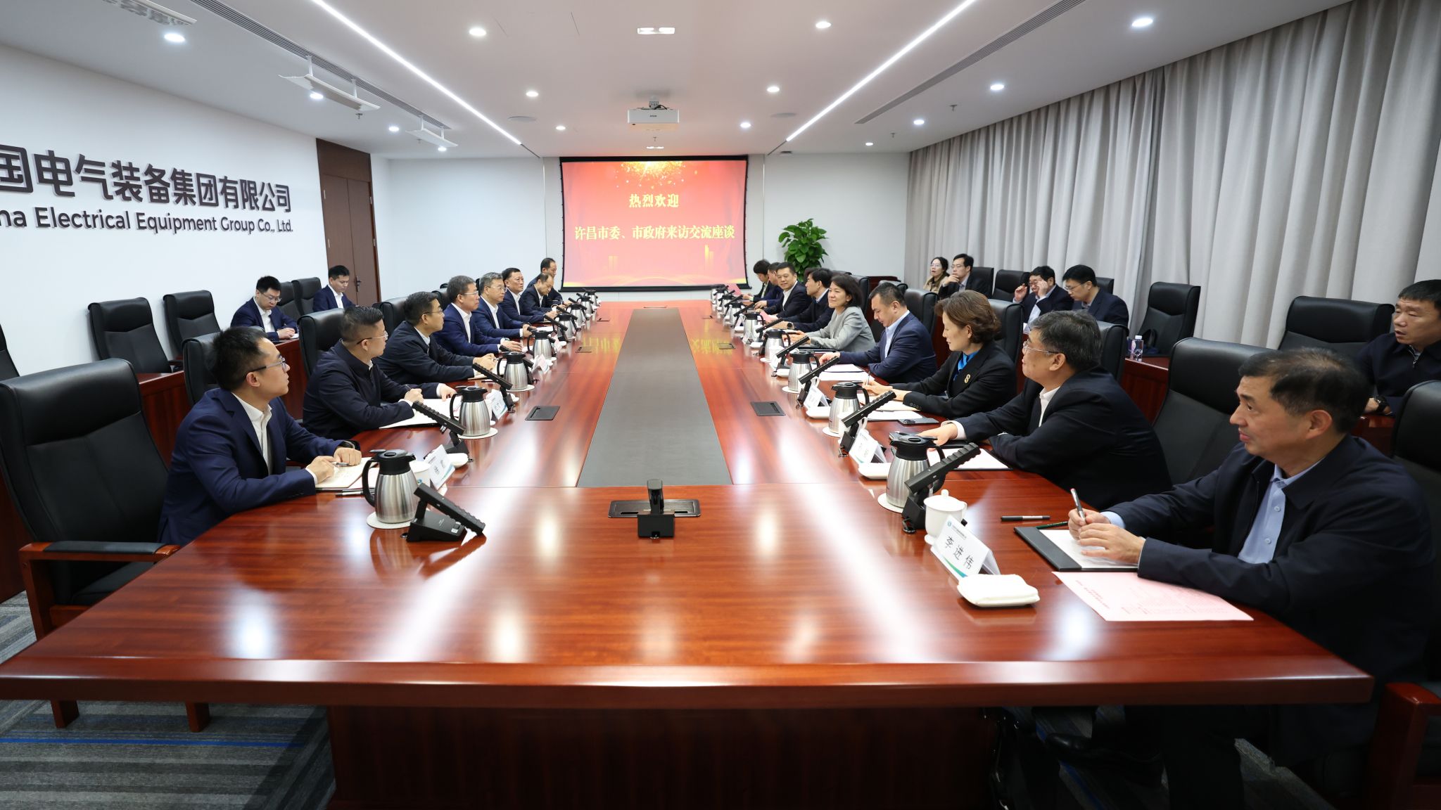 杨小菁对中国电气装备给予许昌市经济发展的支持表示感谢,介绍了许昌市今年以来经济社会发展情况。她表示,许昌市委市政府高度重视并全力支持许继发展,正依托许继等龙头企业、不断打造智能电力龙头之城,希望双方在“十五五”期间持续深化对接,在绿色低碳城市建设、数字化智造、前沿科技创新、国际市场拓展、产业链生态链完善等方面继续加大合作力度,携手推动我国高端电气装备制造业创新发展。许昌市委市政府将以最优营商环境、更大的支持力度,全力服务好中国电气装备在许企业高质量发展。