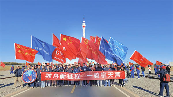 2023年10月19日,航天科技集团神舟十七号任务试验队员送“神箭”出征。