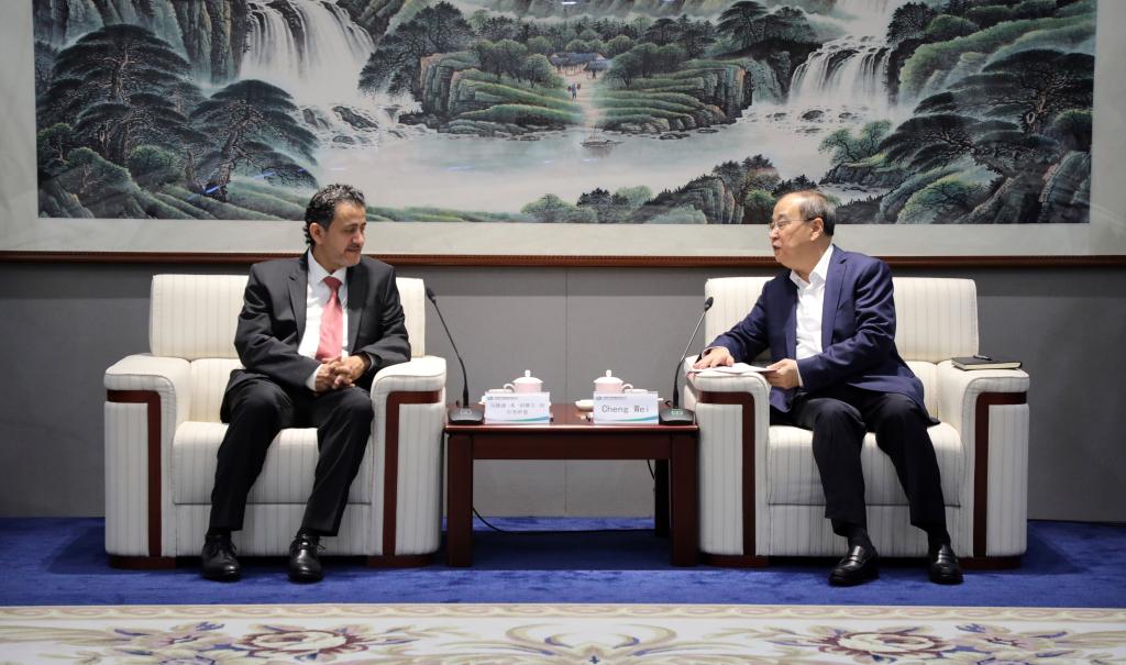 7月17日,集团公司党委常委、副总经理成卫与来访的沙特电力公司总工程师阿布杜拉(Abdulaziz Al-Motawa)、沙特电力公司项目开发公司总裁马赫迪(Mahdi bin Nasser AIDosary)一行举行交流会谈,双方就深入推进“一带一路”倡议与沙特“2030愿景”深入讨论,在输变电项目建设、本土化产能合作、投资/合资建厂、新能源业务开发等领域合作交换了意见。