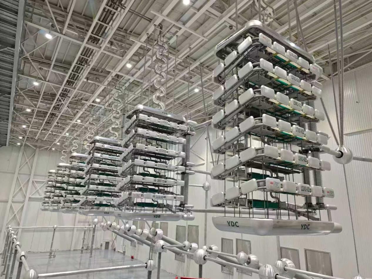 许继电气柔性输电公司为金上工程康甘换流站供货双极高端换流阀及阀控设备,带电调试一次解锁成功,全程稳定可靠运行,达成零缺陷投运目标。实现创新与突破的自主研发体系,对自主化研发的HVTV2000-800/5000E型换流阀进行了工艺创新与提升,并在抗震等级、外绝缘水平、双重过电压防护体系、高速故障录波技术等方面实现多项突破。构建智慧赋能的全周期质量管控体系,运用智慧安装监控系统,对吊装作业、光纤敷设等关键环节实施毫米级误差控制;创新计划编排方式,加强人员机具资源调配,保障物资到货、优化施工流程和工序,显著提升施工效率;通过全方位培训、分阶段交底、一对一指导,严格执行“自检、互检、终检”三检制度等,高标准完成安装与调试任务。