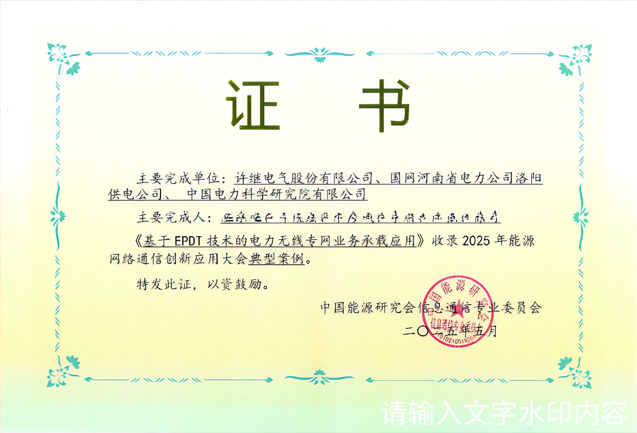 许继电气科学研究院“基于EPDT技术的电力无线专网业务承载应用”项目,从全国175家单位的272个参评项目中脱颖而出,入选“2025年能源网络通信创新应用典型案例”,这标志着许继电气在电力专网通信领域的技术创新、应用实践、模式探索等方面达到了行业较高标准。