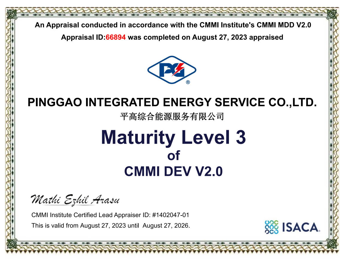 9月4日,从软件能力成熟度模型集成(简称“CMMI”)认证机构获悉,平高集团所属企业综合能源服务有限公司(以下简称“综合能源”)顺利通过CMMIDEV2.0的成熟度等级3(软件能力成熟度模型2.0版本集成3级)认证,标志着综合能源软件能力成熟度、项目管理水平和过程管理能力等方面已经与国际接轨,并获得国际评估机构的认可。