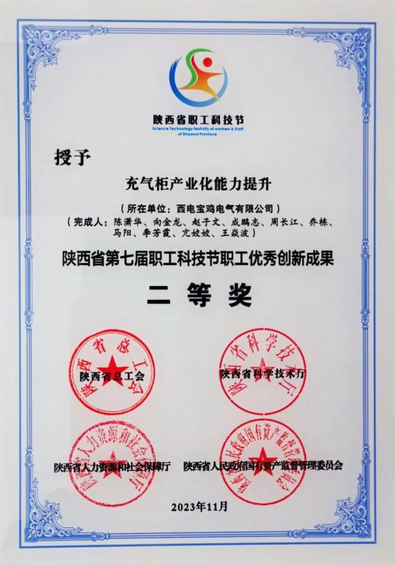 陕西省职工优秀创新成果二等奖——中国西电集团所属西电宝鸡电气 “充气柜产业能力提升”