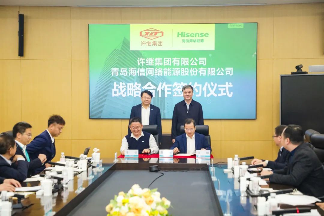 许继集团党委书记、董事长孙继强,海信集团高级副总裁陈维强出席签约仪式,双方代表签订战略合作协议。