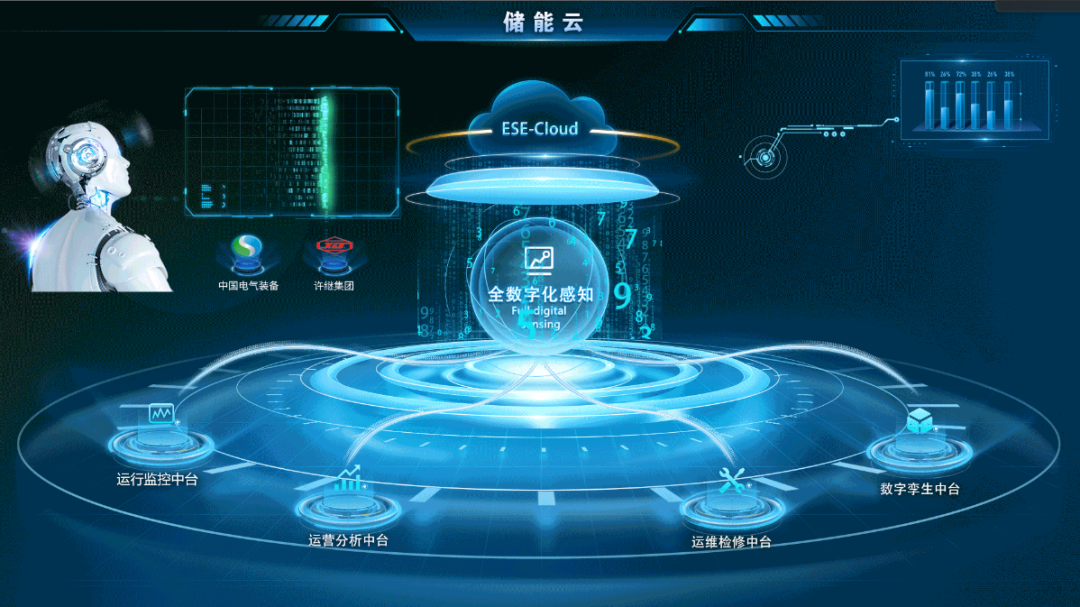 2023年,许继电气充分发挥软件业务引领作用,发布了许继ESE-Cloud储能云平台,打造运行监控、运营分析、运维检修、数字孪生4大类业务中台,自建30+微应用,支持超100座储能站点的同时接入,助力打造“站+云+孪”一体化全数字储能体系,实现多源储能资源灵活高效聚合管控,促进数字能源生态构建,提高储能数字化、智能化水平。