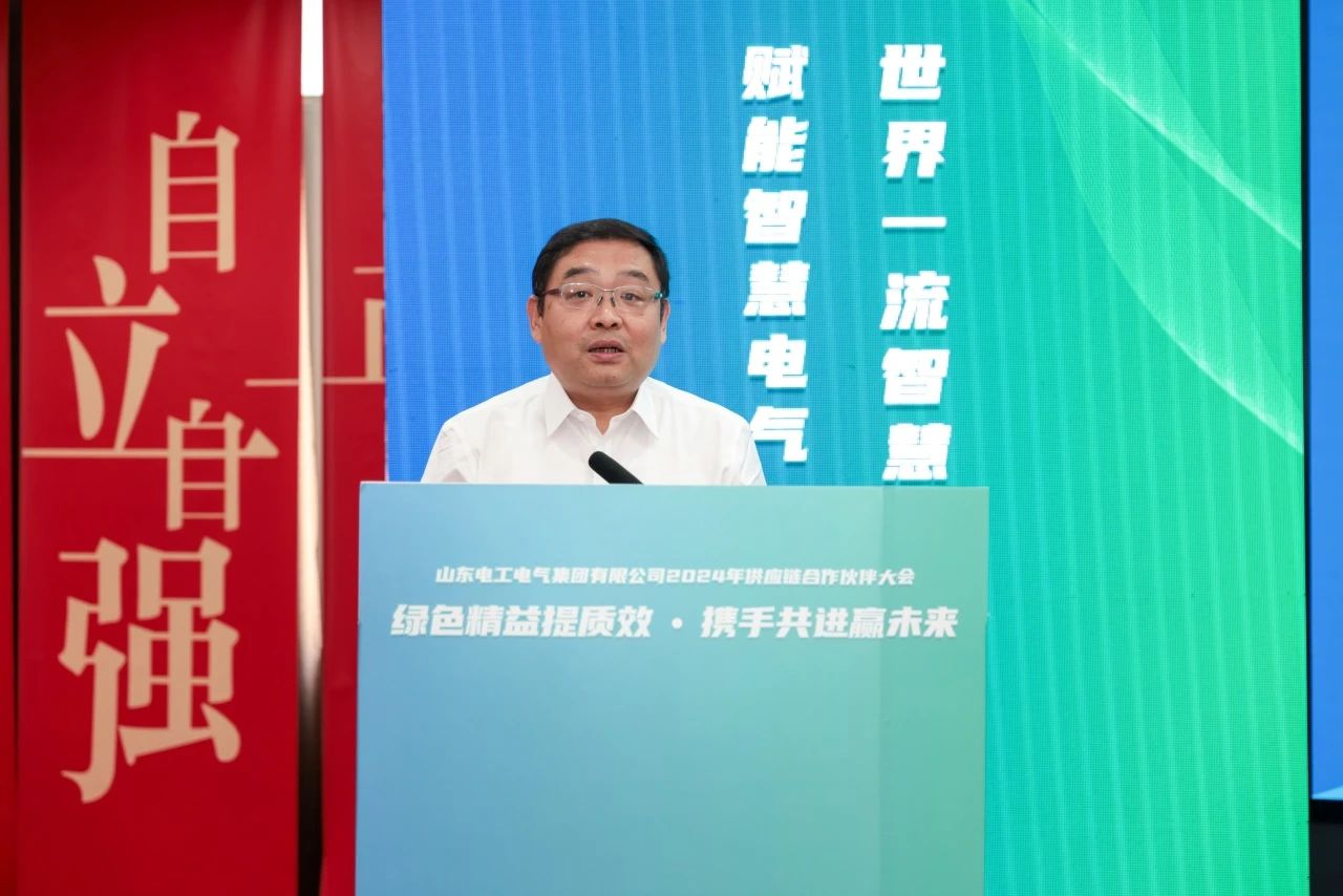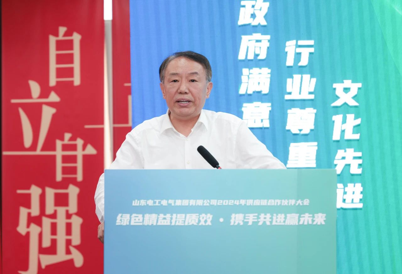 谢堃指出,近年来,济南市认真贯彻落实国家和山东省关于推进新型工业化的部署要求,坚定不移实施工业强市发展战略,持续完善产业政策体系和服务体系,开展产业基础再造和重大技术装备攻关,推动新能源装备产业在内的10大标志性产业链群高质量发展,制造业内生动力和发展活力进一步增强。期待山东电工电气继续深化产业链上下游沟通合作,加快推动技术突破和产品升级,全力建设国际一流的电力装备制造商和系统服务商。希望各供应商企业借此机会,更加深入地了解济南,更为坚定地选择济南。济南市将以更为优良的政策支持、更为高效的产业服务,与各界朋友加强务实合作,共同谱写强省会高质量发展新篇章。
