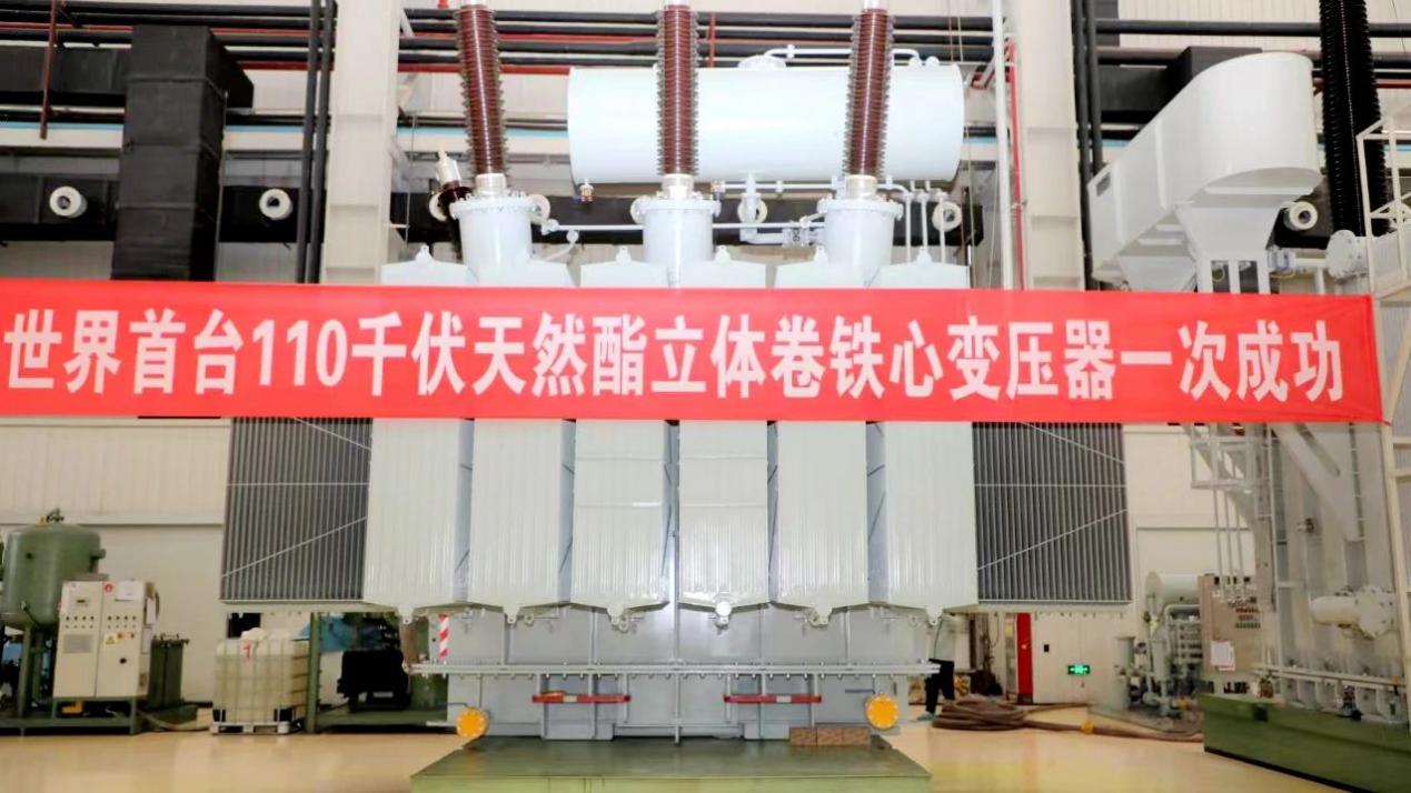 该产品将立体卷铁心设计结构与天然酯油-纸绝缘技术相结合,为国际上首台110千伏/50兆瓦应用国产天然酯的三相立体卷铁心变压器,实现噪声低、超一级能效、绿色低碳、高可靠等特性。产品全面践行了绿色低碳循环发展的转型要求,对降低变压器电能消耗、推动变压器产业发展、实现“双碳”目标具有重要意义。