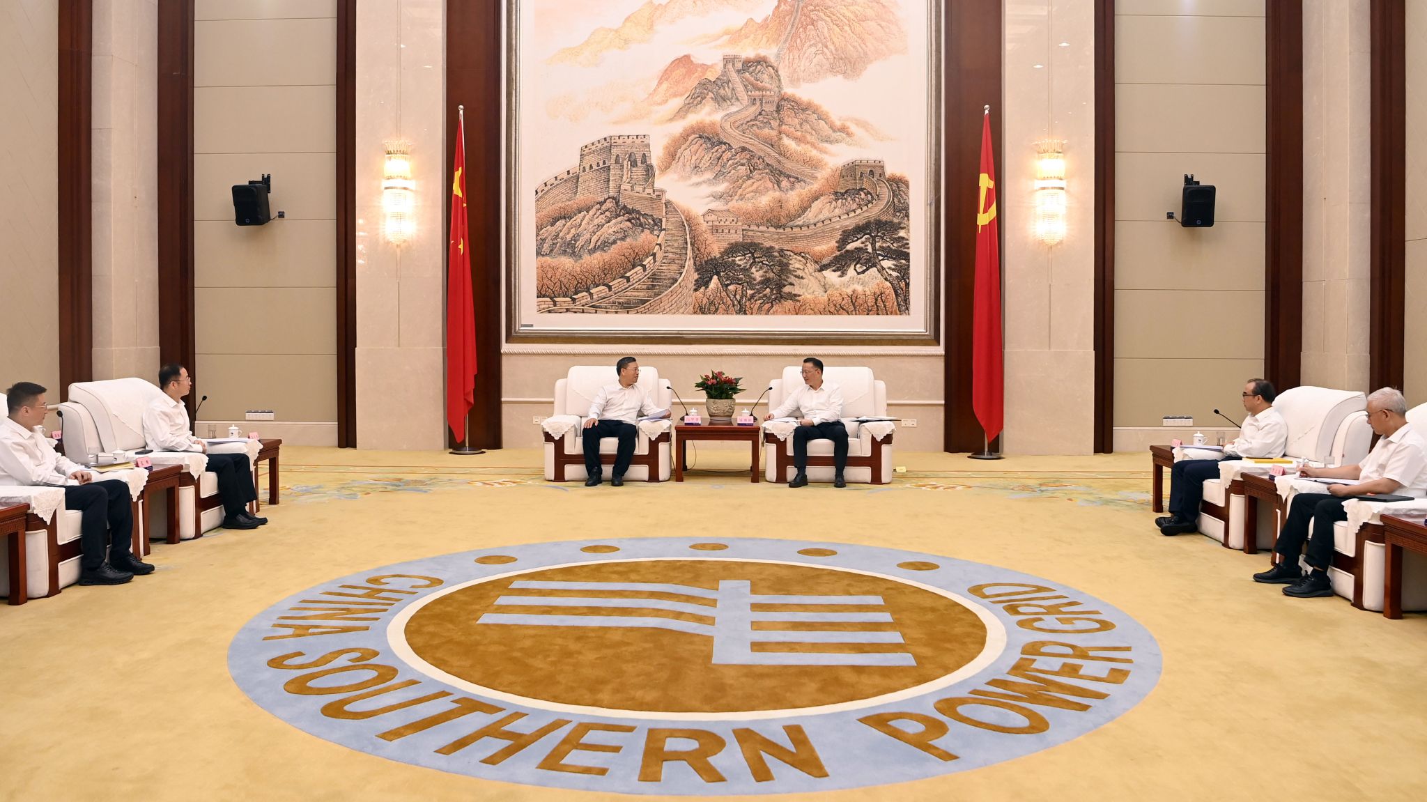 南方电网公司输配电部、办公室、科创部、工程建设部、数字化部、国际部有关负责人;集团公司科技创新部、市场部,中国西电、许继电气、平高电气、宏盛华源、保变电气、储能公司主要负责人参加会谈。