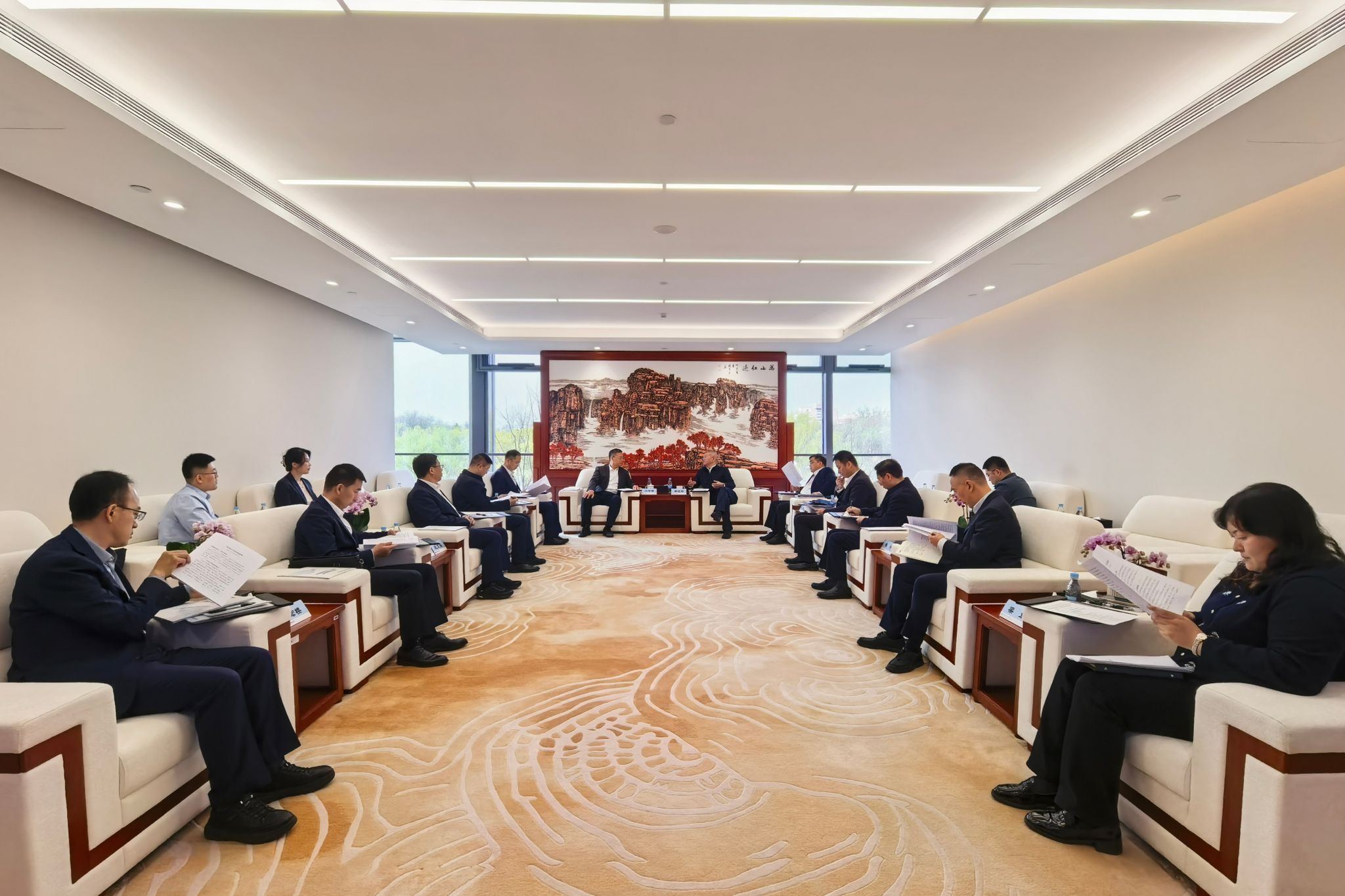 3月27日,中国电气装备党委副书记、总经理闫华锋一行到中咨公司走访交流,与中咨公司党委副书记、总经理郭铭群举行会谈。中咨公司党委委员、副总经理沈浩,集团公司党委常委、副总经理朱安珂参加会谈。