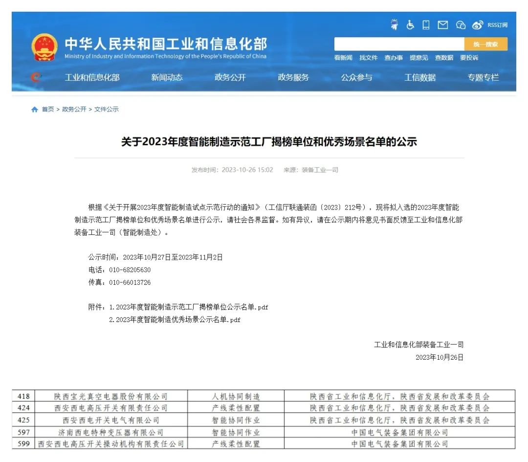 中国西电集团、中国西电所属五家企业成功入选“2023年度国家级智能制造优秀场景”名单