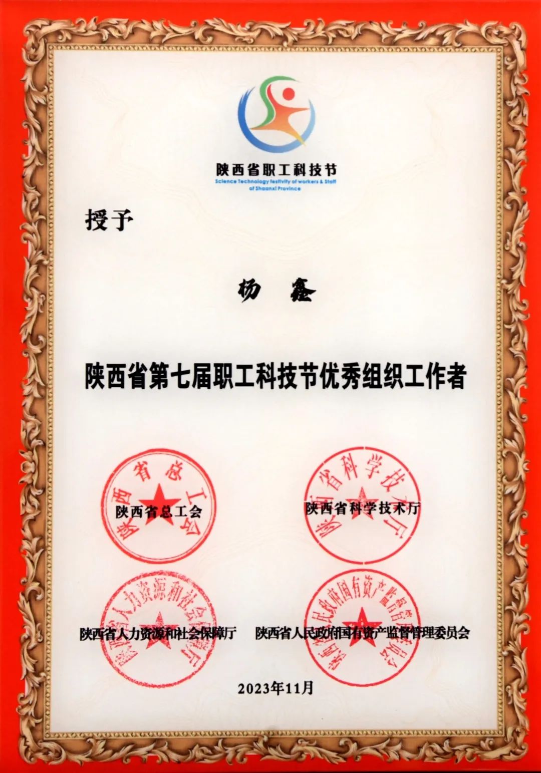 陕西省第七届职工科技节优秀组织工作者