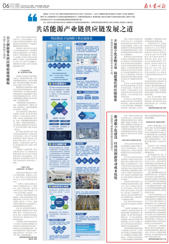 2022年7月29日,第二届南方电网供应链合作伙伴大会在广州成功举行。集团公司党委常委、副总经理成卫在会上作了主题演讲,南网全媒体记者会后对其进行了专访。成卫对记者表示,电网是能源产业链条上的关键一环,新型电力系统建设,必然带动整个供应链条产生本质变化;构建数字经济背景下的现代化供应链体,需要以科技创新带动成本优化,这也是能源行业以及电力装备行业未来主要的发展方向。