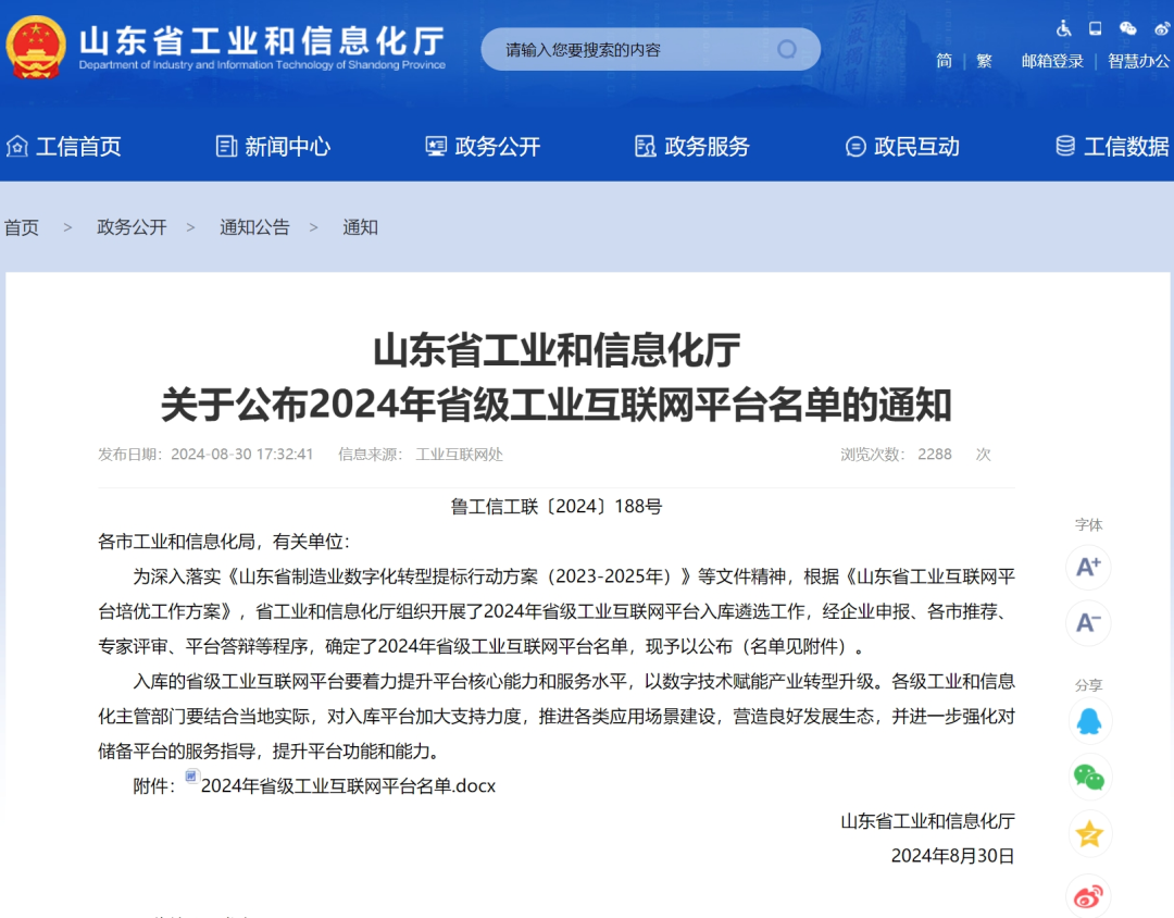 近日,山东省工业和信息化厅组织开展了2024年省级工业互联网平台入库遴选工作,经企业申报、各市推荐、专家评审、平台答辩等程序,山东电工电气“千伏工业互联网平台”成功入选2024年省级工业互联网平台名单,并获评为省级重点平台。