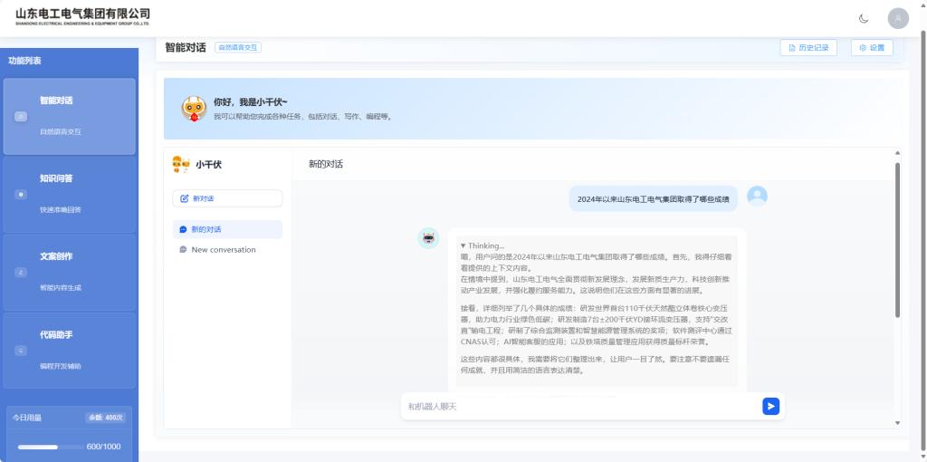 2月20日,山东电工电气完成了DeepSeek系列模型的本地化部署,推出了“小千伏”智能助手,并与工业互联网平台实现集成,为日常办公与管理赋能,标志着集团在人工智能技术应用方面迈出坚实步伐,加速推动电力装备行业数智化建设进程。